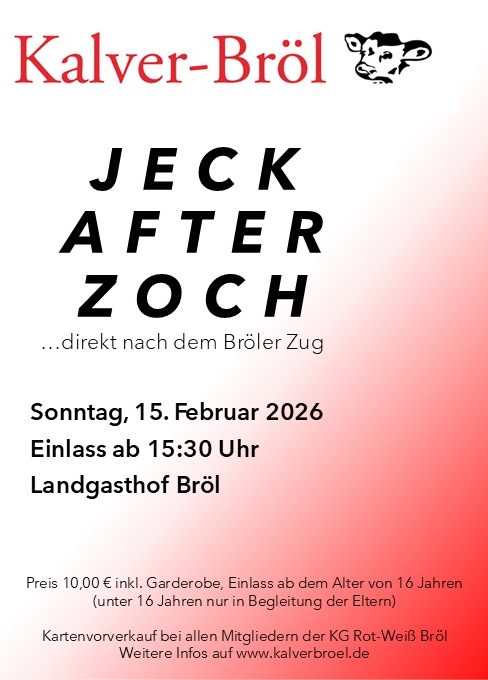 Die Karnevalsgesellschaft "Rot-Weiß Bröl" 1960 e.V. – oder kurz Kalver-Bröl – begrüßt Euch Jecken herzlich auf ihrer Internetseite!